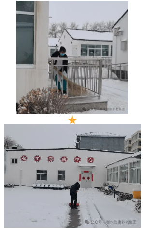 经过大家1个多小时的努力,院内的积雪都被清理干净。有效避免了路面结冰给老人们行走带来的安全隐患,为老人们打通了一条安全通道。