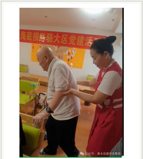 我们院内的长者们还展示了他们的“拿手好戏”,让年轻的海底捞工作人员们领略到了他们年轻时的风采与活力。 这样的活动为养老院的日常生活增添了无限的乐趣与色彩。它让长者们有机会展示自己的才华与魅力,增强了他们的自信心与自尊心;也让工作人员们更加深入地了解了长者们的生活经历与内心世界,更加珍惜与他们相处的每一刻时光。