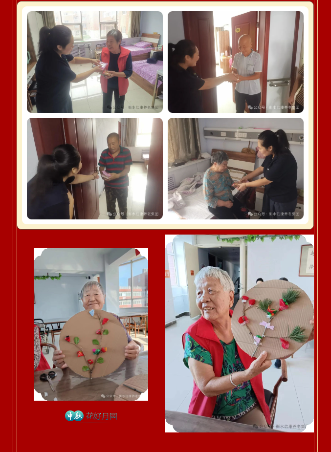 在这个秋风送爽,丹桂飘香,中秋佳节之际,为了营造喜庆的节日氛围我们举办了“月满中秋、情暖夕阳”的中秋主题活动,和老人们一起共度中秋佳节!